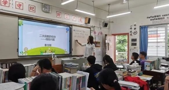 二次函数综合问题中的线段是经常结合一次函数一起考察的内容,不仅仅考察线段,之后还有线段和差最值问题,甚至还结合几何图形的性质一并考察。秦佳敏副主任对学情分析到位,了解到学生“知道了不一定就会,会了不一定就会写”, 把课堂按三步走,第一步,教师讲解“如何表达线段”,第二步,学生思考、教师辅助探索“如何计算”,第三步,学生实战演练“如何把思路与计算综合应用”。这节课下来,不同层次的学生都有了收获,对此类问题的解答树立了信心,作业反馈也显示,大部分学生完全有能力解决此类题型。