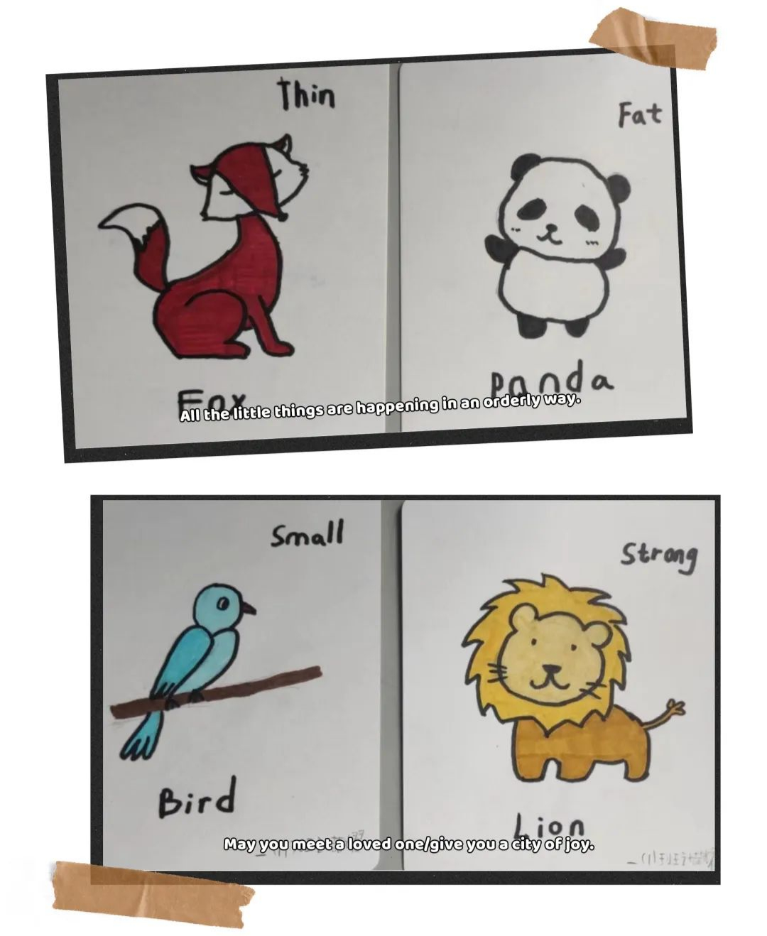 一、二年级小朋友制作的图文并茂的“单词手账”集锦。