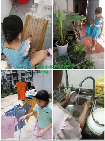 孩子们在家长的指导下,积极投身到家务劳动中,扫地、做美食、洗碗、洗衣服、整理房间……他们以高涨的热情体会到了劳动带来的喜悦,并掌握基本的劳动技能,形成良好的劳动习惯。