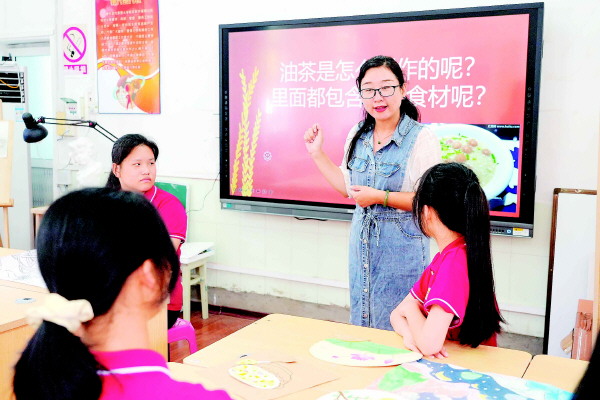 市十六中开展地方优秀传统文化进校园活动,在前不久的课堂上,老师介绍油茶的制作方法。记者邱浩 摄