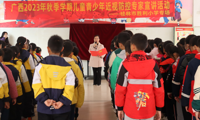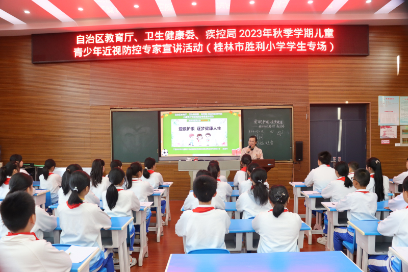 为贯彻落实《教育部办公厅等十五部门关于印发〈儿童青少年近视防控光明行动工作方案(2021—2025年)〉的通知》(教体艺厅函〔2021〕19号)精神,有力推进我区儿童青少年近视防控工作,桂林市胜利小学赵洁玲应邀参加自治区教育厅、卫生健康委、疾控局联合开展的2023年秋季学期儿童青少年近视防控专家宣讲活动。