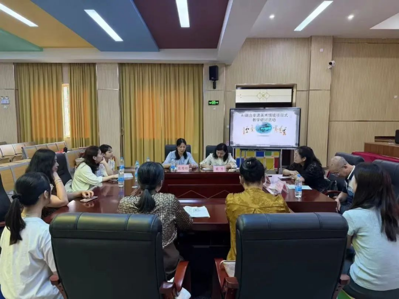 在当天的AI(人工智能)融合非遗美术情境项目式教学研讨活动中,名师工作室导师们从教学方法创新、非遗文化与现代科技融合等多个角度引发研讨,为进一步推动非遗文化在校园美育中的传承与发展提供了新的思路与方向。