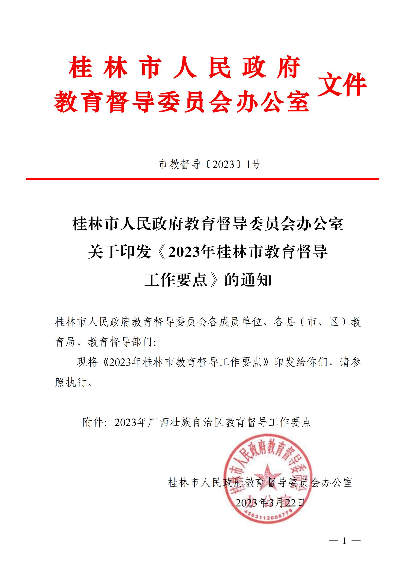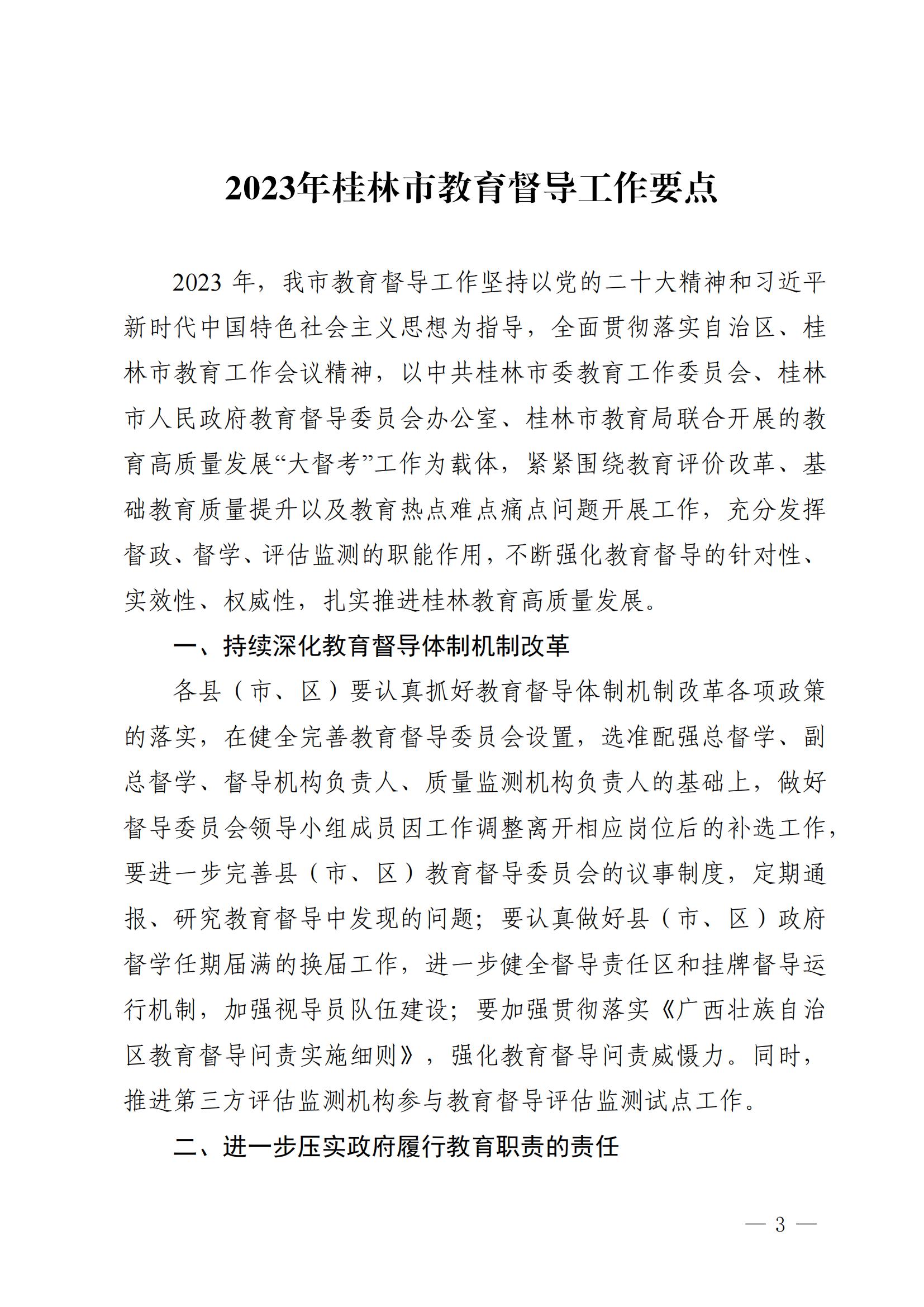 市教督导〔2023〕1号 桂林市人民政府教育督导委员会办公室关于印发《2023年桂林市教育督导工作要点》的通知