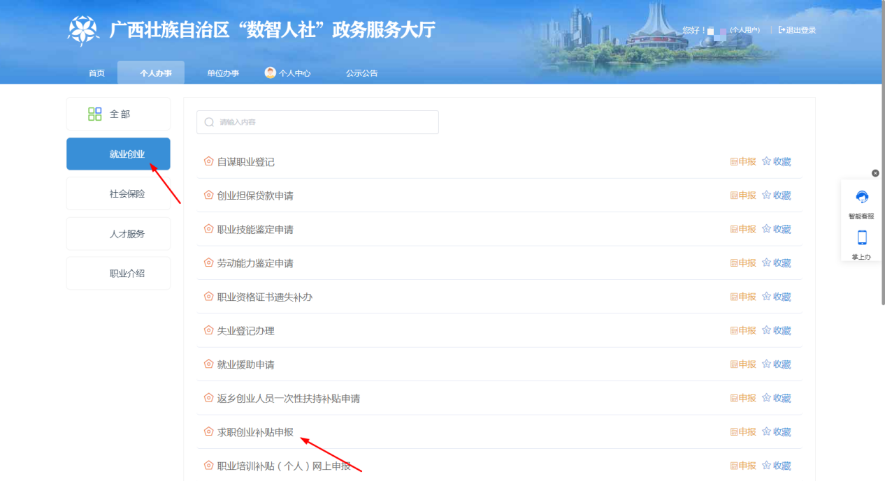 符合申请条件毕业生,按学校所在地人社部门发布的申报通知,在集中申请时段内,通过登录“数智人社”个人网厅(https://www.gx12333.net/si/#/modules/home/home)或“广西人社”APP向所在高校提交申请,申请人应如实、准确填报申请信息。