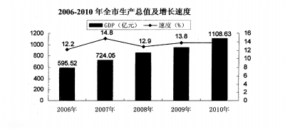 2006-2010年全部工业增加值及增长速度