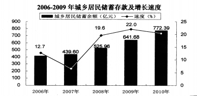 2006-2009年城乡居民储蓄存款及增长速度