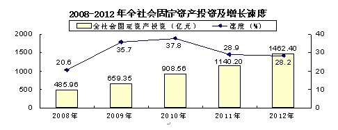 全年全社会固定资产投资1462.40亿元,比上年增长28.2%。其中工业投资538.26亿元,增长45.3%;固定资产投资1336.18亿元,增长28.4%。分区域看,市区投资283.65亿元,增长18.3%;县域投资1178.75亿元,增长30.9%。