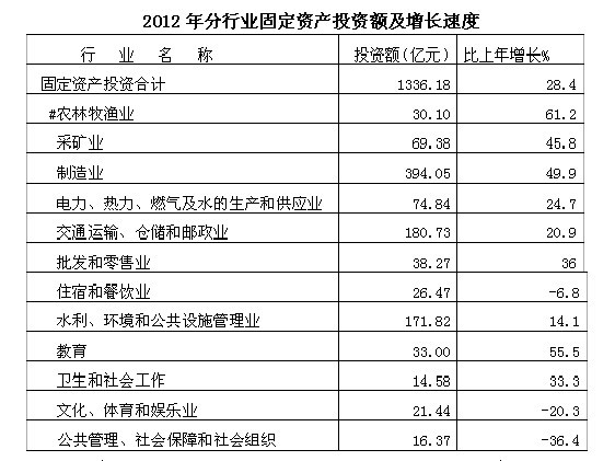 在固定资产投资中,城镇基本建设投资603.86亿元,增长20.3%;城镇更新改造投资414.49亿元,增长42.7%;房地产开发投资176.07亿元,增长11.1%;城镇其他投资31.56亿元,增长32.8%;农村非农户投资108.19亿元,增长67.4%。分产业看,第一产业投资30.10亿元,增长61.2%;第二产业投资541.95亿元,增长45.6%;第三产业投资764.13亿元,增长17.6%。
