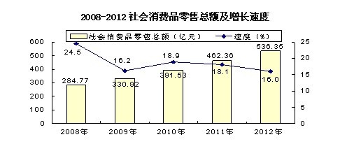 全年社会消费品零售总额536.35亿元,比上年增长16.0%。