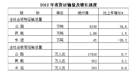 全年交通运输、仓储及邮政业增加值70.12亿元,比上年增长12.1%。年末公路总里程11423公里,增长1.2%。其中,高速公路里程349公里,新建改建二级公路39公里。