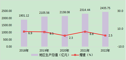 初步核算,全年全市生产总值[2](GDP)2435.75亿元,按可比价计算,比上年增长2.5%。