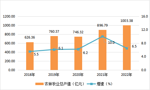 图4 2018-2022年农林牧渔业总产值及增长速度