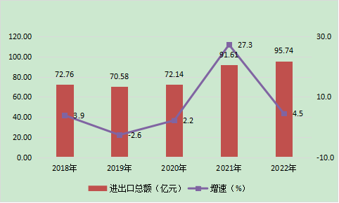 图7 2018-2022年进出口总额及增长速度