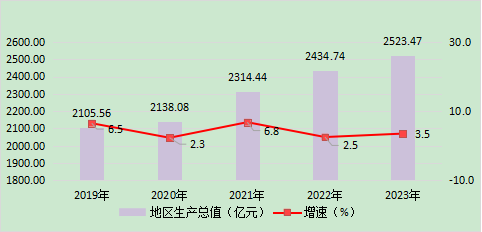 初步核算,全年全市生产总值[2](GDP)2523.47亿元,按可比价计算,比上年增长3.5%。