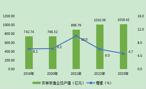 图4 2019-2023年农林牧渔业总产值及增长速度