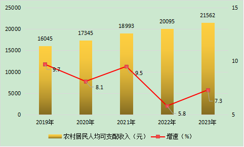 图9 2019-2023年农村居民人均可支配收入及增长速度