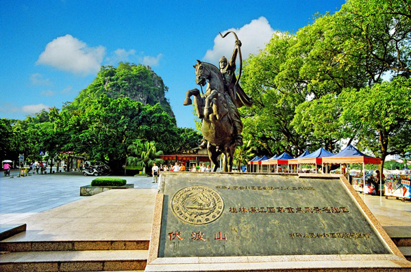 辖区内千峰环立,巍峨多姿、青翠娇媚。有的连绵起伏,奇峰一片;有的平地拔起,亭亭玉立。象鼻山似饮水象鼻、老人山如远眺老人、骆驼山象跋涉骆驼,伏波山、叠彩山、独秀峰、塔山等婀娜多姿,栩栩如生。南宋诗人范成大在《桂海虞衡志》中称赞:“桂山之奇,宜为天下第一”。 |