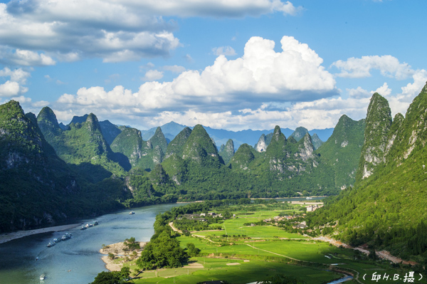 桂林的水,清澈如练,水波含情。市区大小湖塘数百,如繁星点缀。百里漓江绕城而过,似银河铺泻。奇峰夹岸,碧水潆回,青山浮水,风光秀丽,犹如一幅百里画卷。“深潭、险滩、流泉、飞瀑”佳景叠出,动人心魄。