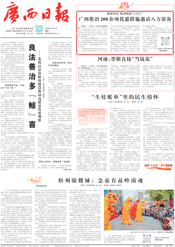 广西三月三将至,4月6日,记者从自治区文化和旅游厅了解到,全区14个设区市联动180余个景区及乡村旅游区,推出200余项优惠措施,邀请八方游客春假来桂,畅游畅购“三月三”。