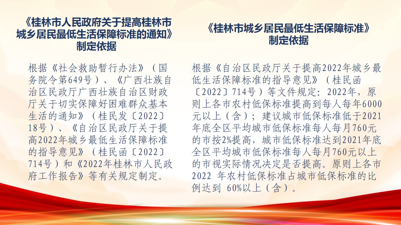 “六稳”“六保”【图文解读】《桂林市人民政府关于提高桂林市城乡居民最低生活保障标准的通知》政策解读(市政规〔2022〕19号)