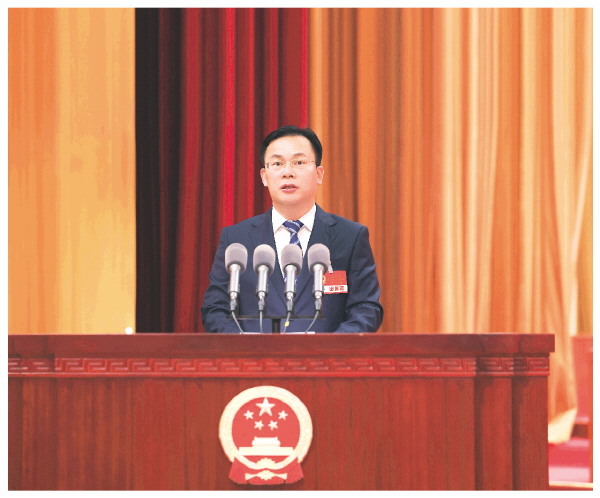 市长卢新华代表市人民政府向大会作政府工作报告。 记者李凯 摄