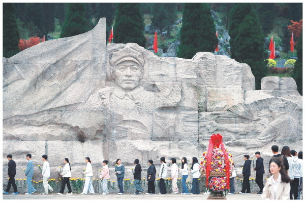 上午9时许,红军长征湘江战役纪念园凭吊广场庄严肃穆。全体人员整齐列队、肃立默哀,深切缅怀红军英烈,行三鞠躬致敬不朽功勋。仪式最后,大家缓步前行、依次敬献鲜花,驻足凝视,深切悼念长眠于此的红军英烈。