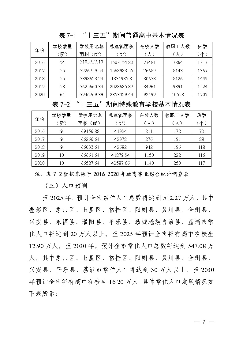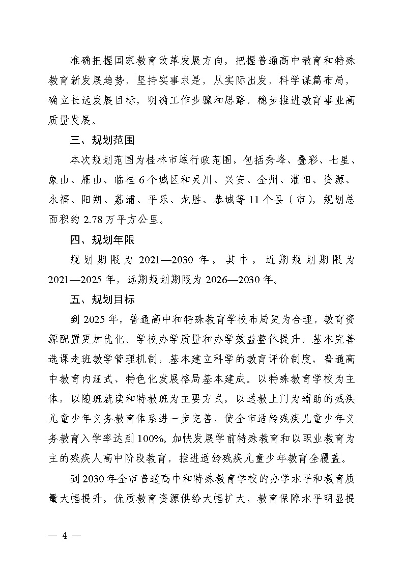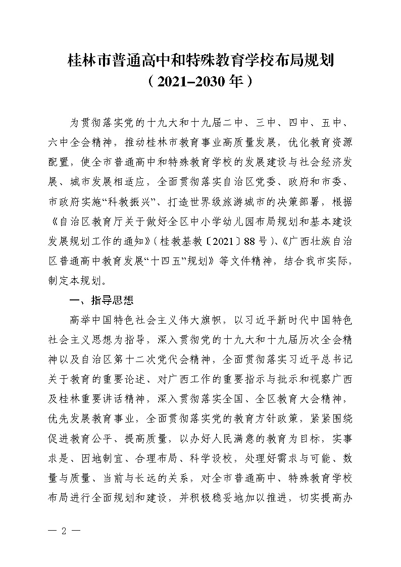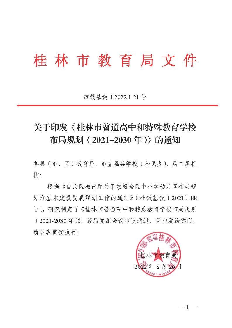 市教基教〔2022〕21号 关于印发《桂林市普通高中和特殊教育学校布局规划(2021-2030年)》的通知