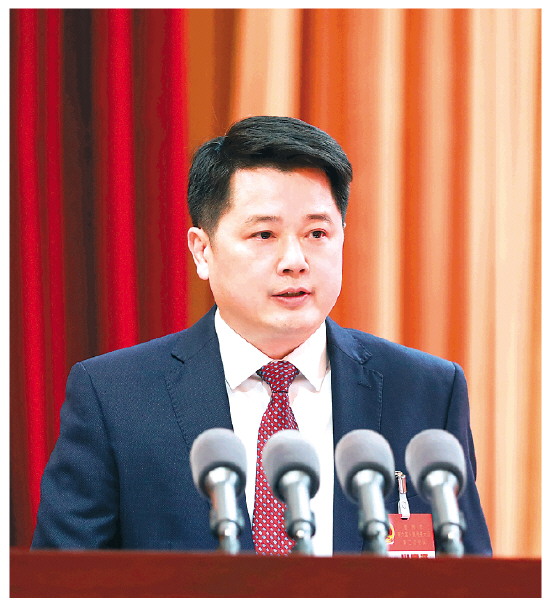 ▲李楚市长作政府工作报告。 记者何平江 摄