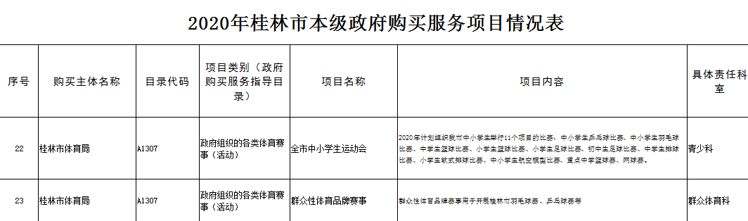 桂林市体育局2020年桂林市本级政府购买服务项目情况表