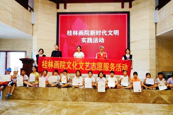 行公共教育职责,丰富青少年新时代文明实践活动,提升青少年艺术修养,2023年7月27日上午,桂林画院与共建的铁路社区开展了一场暑期实践活动,我院专职雕塑家、公共教育部主任黄熙老师结合我院正在展出的“尹一鹏艺术作品捐赠展”,在展厅里为铁路社区辖区内胜利小学的孩子们上了一堂生动的公教课。