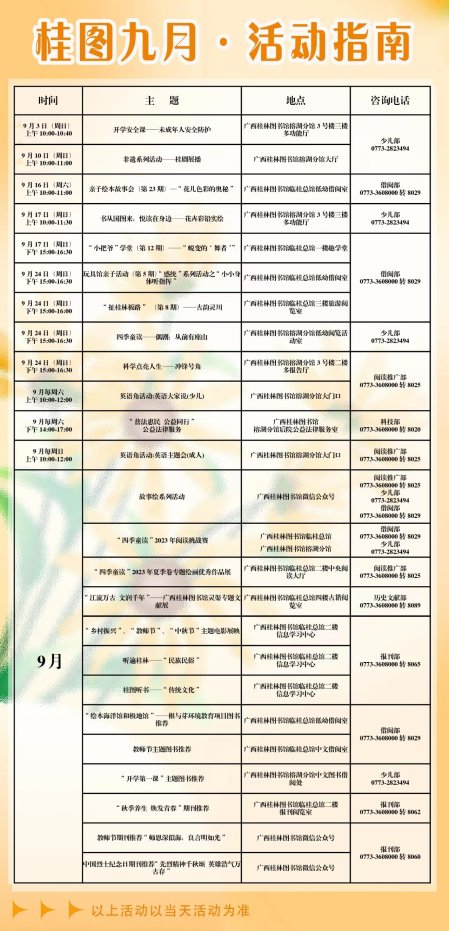 广西桂林图书馆9月活动一览表