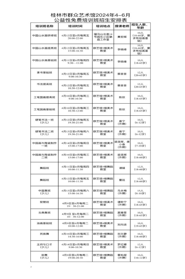 本期培训班自2024年4月9日开始至6月底结束,课程开设有美术、音乐、舞蹈、语言类共20个班。