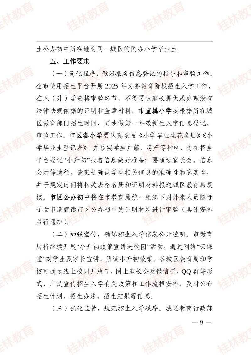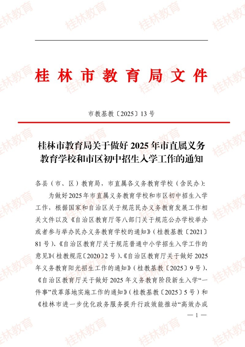 市教基教〔2025〕13 号 桂林市教育局关于做好2025年市直属义务教育学校和市区初中招生入学工作的通知