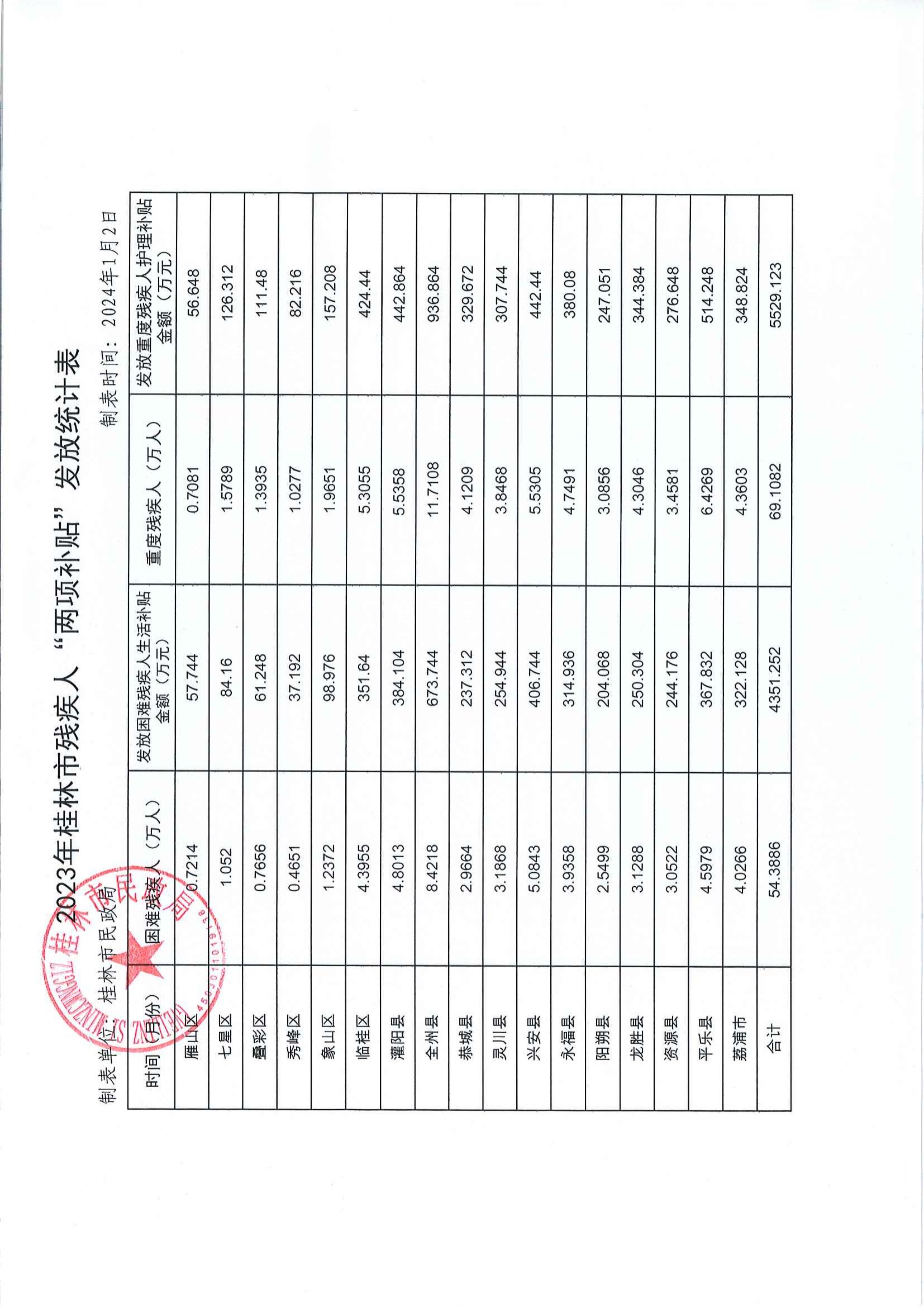 2023年桂林市残疾人“两项补贴”发放情况统计表