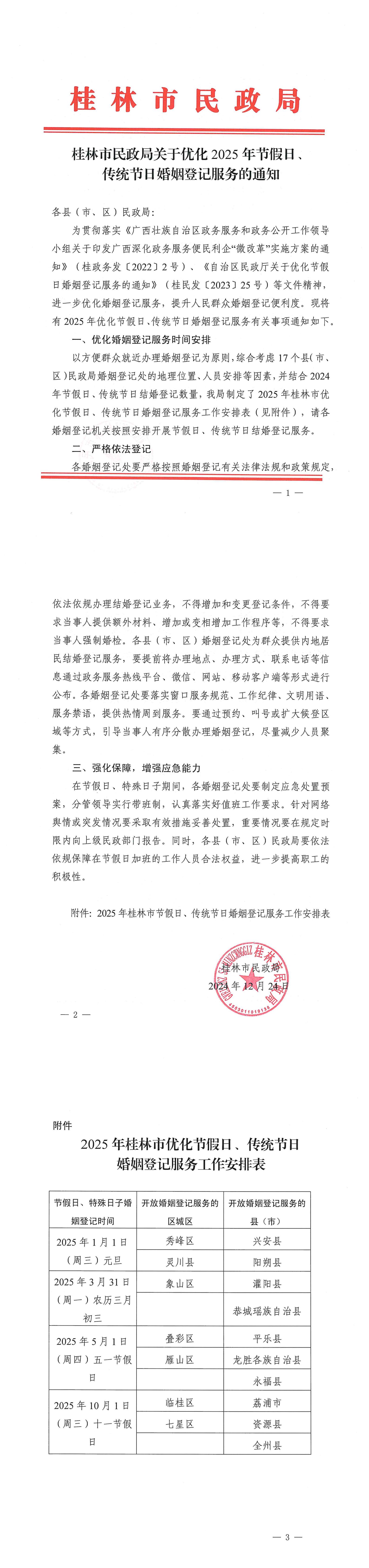 桂林市民政局关于优化2025年节假日、传统节日婚姻登记服务的通知