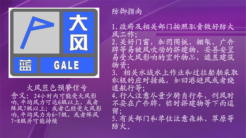 桂林市气象台21日16时35分发布大风蓝色预警信号:预计未来24小时内市区将出现6级(或阵风7级)以上大风,请做好防范。