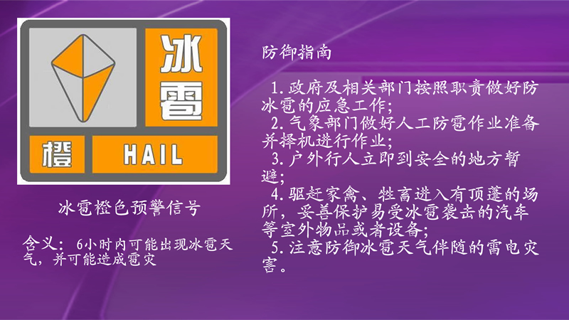 桂林市气象台1日5时48分发布冰雹橙色预警信号:预计未来6小时内我市局部可能出现冰雹伴随雷电天气,并可能造成雹灾,请做好防范。