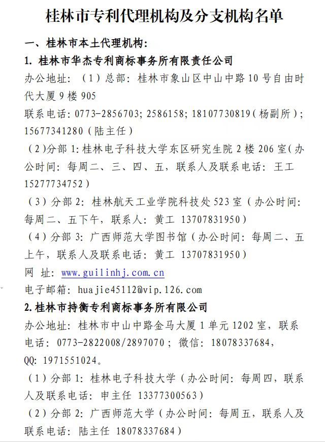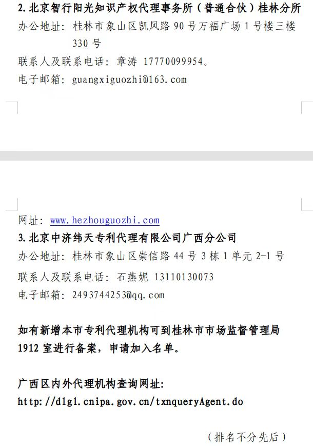 桂林市专利代理机构名单