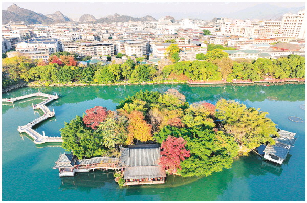 榕湖湖心岛鸟瞰。 李腾钊 摄