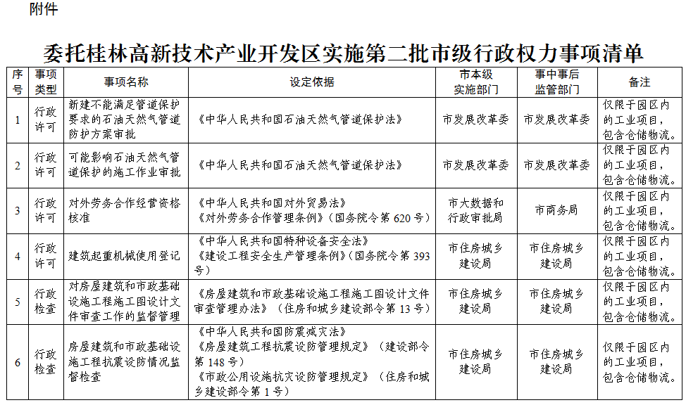 附件:委托桂林高新技术产业开发区实施第二批市级行政权力事项清单