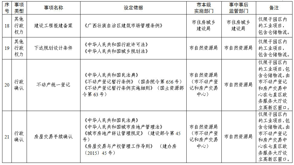 一、委托桂林高新技术产业开发区实施第二批市级行政权力事项21项