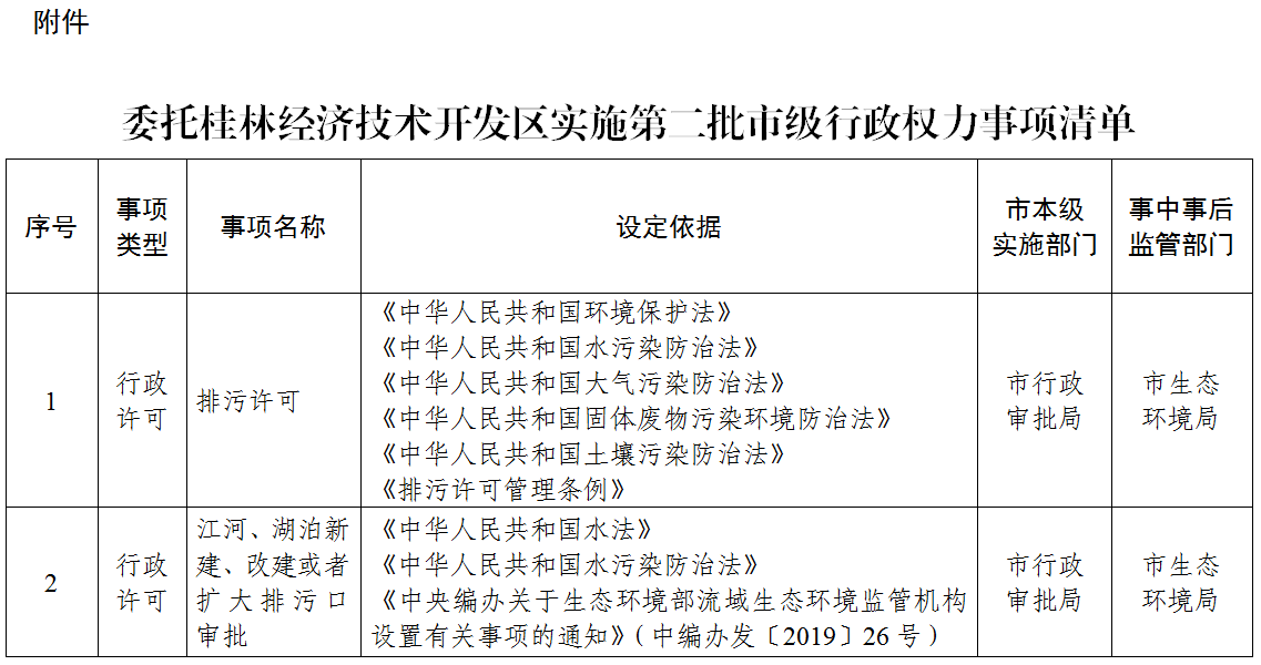一、委托桂林经济技术开发区实施第二批市级行政权力事项2项