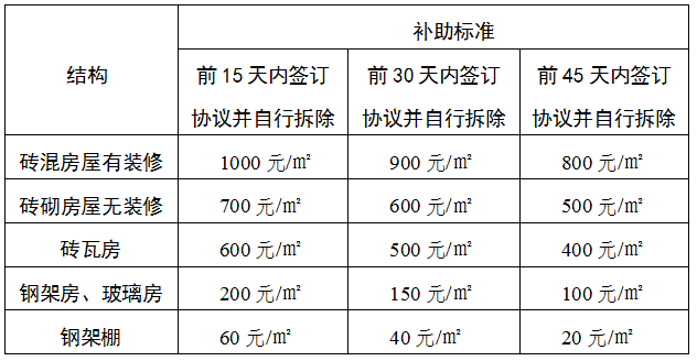 (三)在规定时限内搬迁完毕交出钥匙的,可增加200元/平方米自拆补助(不含钢架棚)。