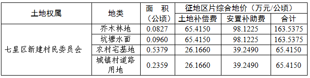 为保障项目用地,根据《中华人民共和国土地管理法》和《中华人民共和国土地管理法实施条例》的有关规定,我市拟定了七星区新建村城中村改造配套设施项目建设用地征地补偿安置方案,现将征地补偿安置方案内容和有关事项公告如下: