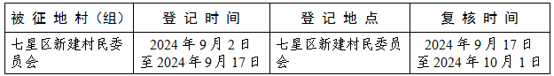 七、被征收土地四至范围内的土地所有权人、使用权人在本公告规定的期限内,持土地权属证书或其他有关证明材料,到指定的地点办理征地补偿登记,请相互转告。如认为征地补偿方案不符合法律、法规规定的,可申请举行听证会,于2024年10月1日之前以村民委员会为单位,以书面形式送达桂林市七星区人民政府(地址:桂林市骖鸾路26号高新开发大厦,联系人:李坚,联系电话:0773—5869218),逾期未提出意见或听证申请的,视为放弃。