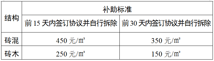 (三)在规定时限内搬迁完毕交出钥匙的,可增加200元/㎡的自拆补助。
