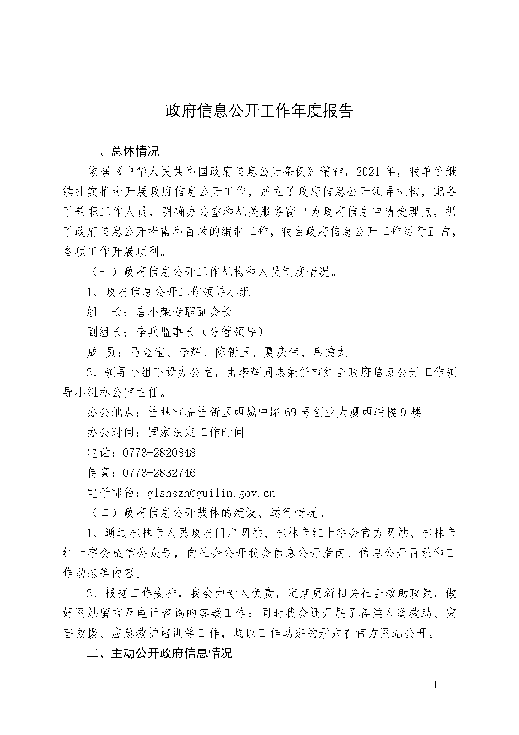 桂林市红十字会2021年政府信息公开工作年度报告