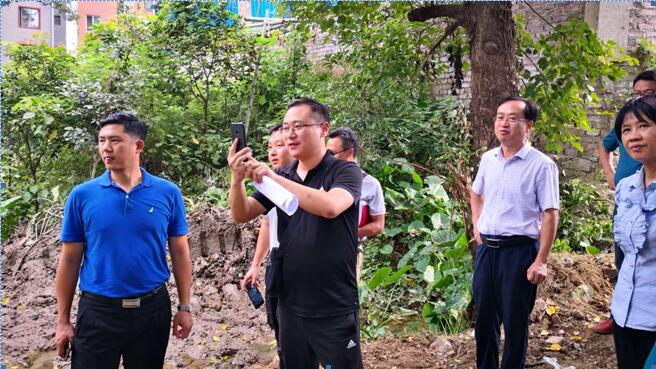 图为督查人员现场核查松湖山庄清理整治情况