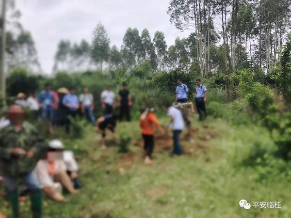 近日,四塘镇某村委会阳某英、阳某秀欲将亲属死者阳某保下葬在苏家岭,遭到村民阻拦。四塘派出所民警到达现场后,了解到大湾村委会苏家岭属于纠纷地(临桂区自然资源局已立案),立即会同四塘镇综治办开展现场调处。