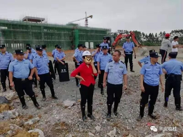 临桂分局四塘派出所打响治理四塘三大乱象第一枪,依法对擅自破坏纠纷地现状、寻衅滋事的阳某英、阳某秀执行拘留。